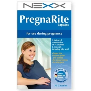 PregnaRite 30 Capsules هو مكمل غذائي مصمم خصيصًا لدعم صحة الأم الحامل والجنين. يحتوي هذا المكمل على مزيج متكامل من الفيتامينات والمعادن الضرورية خلال فترة الحمل، مثل حمض الفوليك، الحديد، والكالسيوم. يساعد في تلبية احتياجات الجسم الغذائية الضرورية خلال الحمل، مما يدعم نمو الجنين بشكل صحي ويحافظ على صحة الأم. كما أنه مصمم لتقليل احتمالية حدوث نقص في العناصر الغذائية المهمة خلال الحمل.