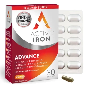 أيضا، يعمل اكتيف ايرون بتقنية مبتكرة تقلل من الآثار الجانبية التي قد تسببها مكملات الحديد التقليدية، مثل اضطرابات المعدة.