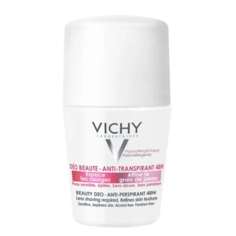 Vichy Beauty Anti Perspirant 48H Deodorant Roll On 50ml رول أون مزيل عرق بتركيبة فعالة تجمع بين الحماية والجمال. يقلل التعرق ويحافظ على نعومة البشرة تحت الإبطين لمدة تصل إلى 48 ساعة، مع مكونات مهدئة وخالية من الكحول. الحجم 50 مل مثالي للاستخدام اليومي ومناسب للبشرة الحساسة.